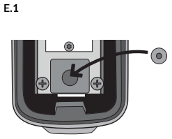 1. Si vous avez acheté le capteur d’alarme séparément, munissez-vous du petit aimant rond fourni avec le capteur. Coller la vignette adhésive au dos de l’aimant, retirer la pellicule de protection de l’adhésif et coller l’aimant au fond du trou conformément à la figure E.